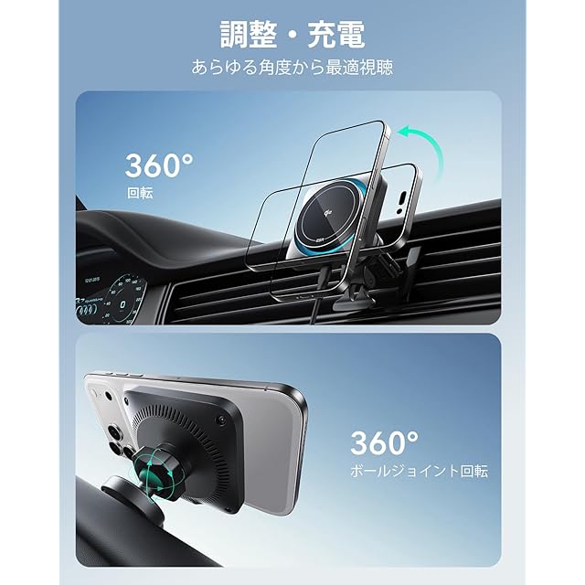 思い通りに固定:車の吹き出し口またはダッシュボードに取り付けてください。強力な通気口マウントと高品質の接着剤が、さらに高い安定性を実現します。