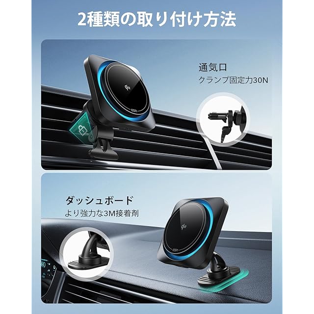 商品名:ESR 【冷却ファン内蔵】スマホホルダー 車 Qi2 15W 急速充電 マグネット スマホ冷却機能搭載 超強磁力 Qi2 充電器 magsafe 車載ホルダー CryoBoost 自由角度調整 エアコンルーバー/ダッシュボード式 スマホスタンド 車 ワイヤレス充電 iPhone Air 17 Pro Max 16e 16 15 14 13 12、Samsung S25、Pixel 10対応